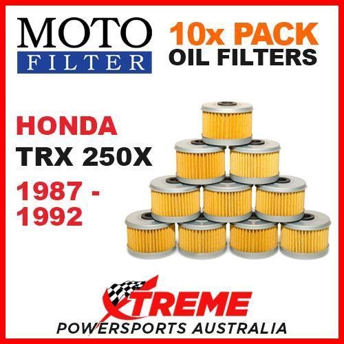 10 PACK MX MOTO FILTER OIL FILTERS HONDA TRX250X TRX 250X 1987-1992 ATV QUAD You are purchasing: Moto Filter 10x Pack of Oil Filters (MFO113BOX) Suits: HONDA TRX 250X Years 1987-1992 Specifications: Constructed using the highest quality paper creating a high filtration flow rate. Easy to follow HiFlo / K&N numbering system. To fit Honda TRX 250X 1987, 1988, 1989, 1990, 1991, 1992 models.