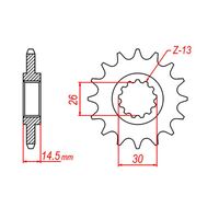 MTX OE Steel sprockets are strong and durable, heat-treated and hand-finished for longevity. Front sprockets are constructed from SCM420 chromoly steel alloy where rear sprockets are constructed from C45 high carbon steel with a Zinc electroplated finish. Designed as an OEM replacement to exceed OEM specifications at a fraction of the price, making them your ideal cost-effective solution for replacing old worn and warped sprockets.