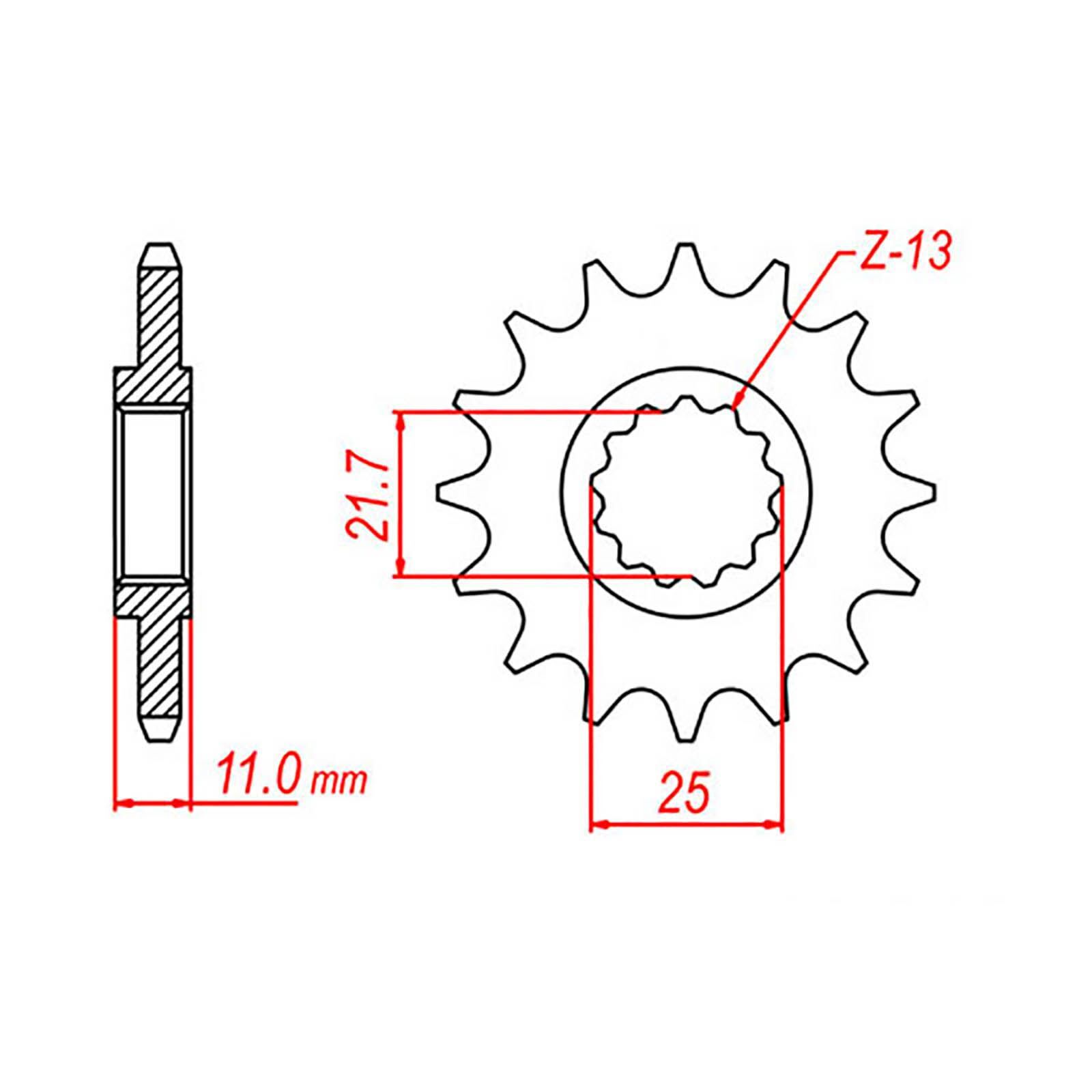 MTX OE Steel sprockets are strong and durable, heat-treated and hand-finished for longevity. Front sprockets are constructed from SCM420 chromoly steel alloy where rear sprockets are constructed from C45 high carbon steel with a Zinc electroplated finish. Designed as an OEM replacement to exceed OEM specifications at a fraction of the price, making them your ideal cost-effective solution for replacing old worn and warped sprockets.