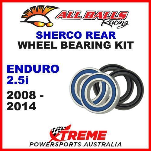 25-1556 MX REAR WHEEL BEARING & SEAL KIT SHERCO ENDURO 2.5i 2.5I 250cc 2008-2014 You are purchasing : All Balls Rear Wheel Bearing Kit (25-1556) Suits: SHERCO Enduro 2.5i 250cc Years 2008-2014 Specifications: All the bearings and seals required to refit a wheel in one convenient package. Premium high-speed bearings feature low drag, double lip seals on both sides to provide superior exclusion of water and dirt and improved grease retention. High performance Chevron SRI-II grease features special rust inhibitors for the most demanding application. Type TC, Nitrile Elastomer wheel seals are specifically designed to keep out water and dirt. The rubber coated diameter creates an optimum seal at the hub. To fit Sherco Enduro 2.5i 250cc 2008, 2009, 2010, 2011, 2012, 2013, 2014 models.