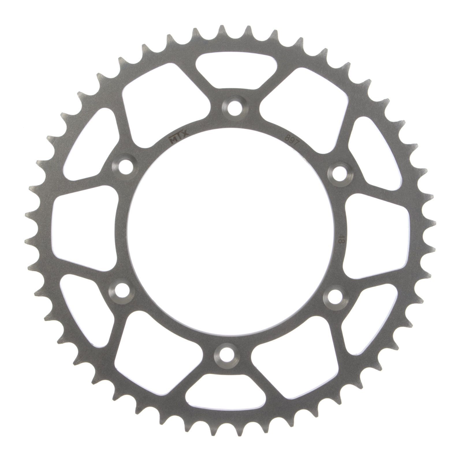 CNC machined from case-hardened Chromoly steel the MTX Hornet Lightweight Steel rear sprockets are built to last. The combination of the fully-heat treated steel, and computer designed weight reduction holes the MTX Hornet will last longer than any alloy sprocket and weigh less than solid OEM steel sprockets. Self-cleaning holes increase chain and sprocket life while a nickel finish provides corrosion and wear resistance.