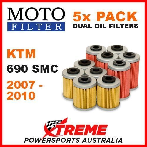 5 PACK MOTO MX OIL FILTERS KTM 690 SMC 690cc 2007-2010 SUPERMOTO DIRT BIKE You are purchasing: Moto Filter 5x Pack of Oil Filters (MFO155BOX + MFO157BOX) Suits: KTM 690 SMC Years 2007-2010 Specifications: Constructed using the highest quality paper creating a high filtration flow rate. Easy to follow HiFlo / K&N numbering system. To fit KTM 690 SMC 2007, 2008, 2009, 2010 models.