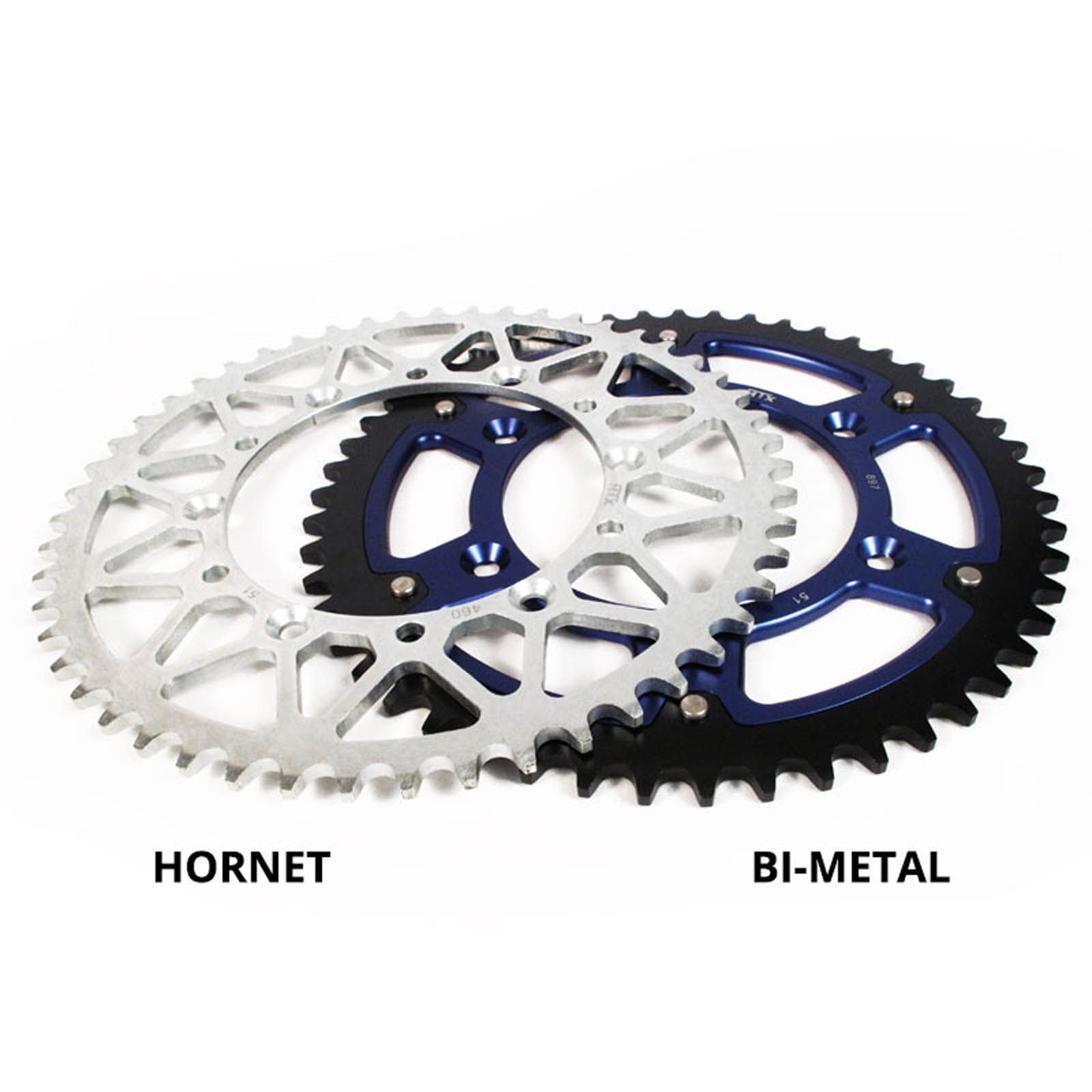 CNC machined from case-hardened Chromoly steel the MTX Hornet Lightweight Steel rear sprockets are built to last. The combination of the fully-heat treated steel, and computer designed weight reduction holes the MTX Hornet will last longer than any alloy sprocket and weigh less than solid OEM steel sprockets. Self-cleaning holes increase chain and sprocket life while a nickel finish provides corrosion and wear resistance.