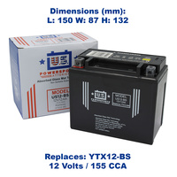 - This battery is a replacement for YTX12-BS
