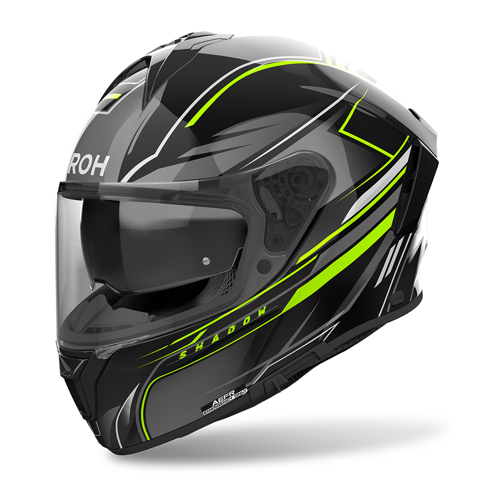 With the new airoh full-face made of hrt (high resistant thermoplastic) and its aggressive and aerodynamic lines, you will feel completely comfortable in every situation where theres just the road ahead of you. Engineered in the wind tunnel and developed on 2 different external shell sizes, spark will ignite your desire to jump on your bike, whatever your destination. Extra-wide visor, integrated sun screen visor, bluetooth-ready, stop wind and pinlock included.