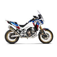 The Akrapovic Racing system is designed for riders who demand maximum performance. Racing system is lighter if compared to stock exhaust system and features exceptional production quality, hi-tech materials and of course increased engine performance combined with pure racing sound output. The double-flow muffler is a unique combination of a hexagonal shape and a more classic rear endcap, finished with a durable titanium muffler sleeve and robust carbon-fibre clamp.For perfect performance, throttle response and durability, ECU remapping is recommended.FITMENT NOTICE: This product is compatible with original Honda center stand, engine guard and pannier stays.THIS PRODUCT DOES NOT MEET EMISSION COMPLIANCE REQUIREMENTS FOR STREET OR HIGHWAY USE.