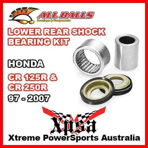 ALL BALLS 29-5008 LOWER REAR SHOCK BEARING KIT HONDA CR 125R 250R 97-2007 MX You are purchasing : All Balls Racing Lower Rear Shock Bearing Kit (29-5008) Suits: HONDA CR 125RYears 97- 2007 CR 250RYears 97-2007 Specifications: Direct OEM replacement bearing assembly containing all of the required components. Kit contains all bearings, seals, spacers and bushings (if required) to rebuild the shock to factory specifications.