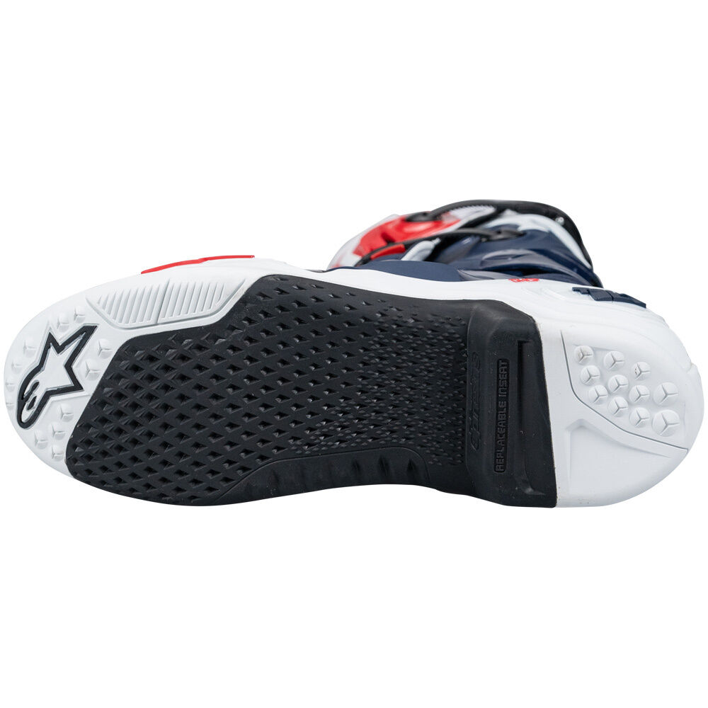 The Tech 10s re-design has been guided by three priorities as the Alpinestars technical footwear development team looked to improve overall functionality, performance and safety, decrease weight and reduce material volume. Maximizing these priorities is the key achievement of the new Tech 10 and the result is an all new boot with a greater range of movement and flexibility while offering better control over the flexion and torsion forces that significantly improve boot performance, giving the rider greater confidence and protection.
