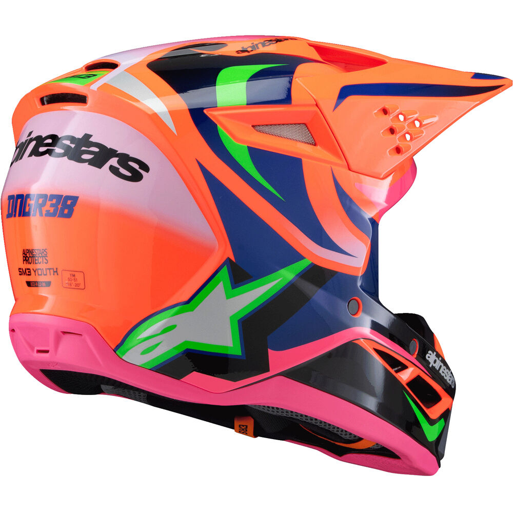 The S-M3 helmet is a cutting-edge protective gear designed for global safety standards, conforming to DOT certification and ECE 2206 homologation. It features a patented visor release system that reduces neck strain during impacts, while its advanced ventilation system—boasting 10 inlets and 7 exhaust ports—ensures exceptional heat transfer. Enhanced safety is provided by Alpinestars' innovative low-friction coating on the EPS liner, which minimizes rotational forces during oblique impacts. Additionally, the lightweight thermo-injected outer shell, crafted with a specialized polymer blend, delivers superior impact protection without compromising comfort.