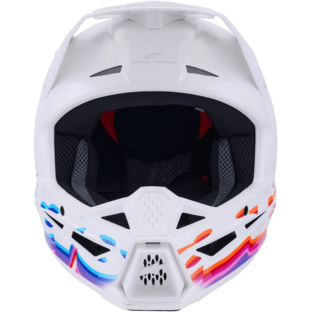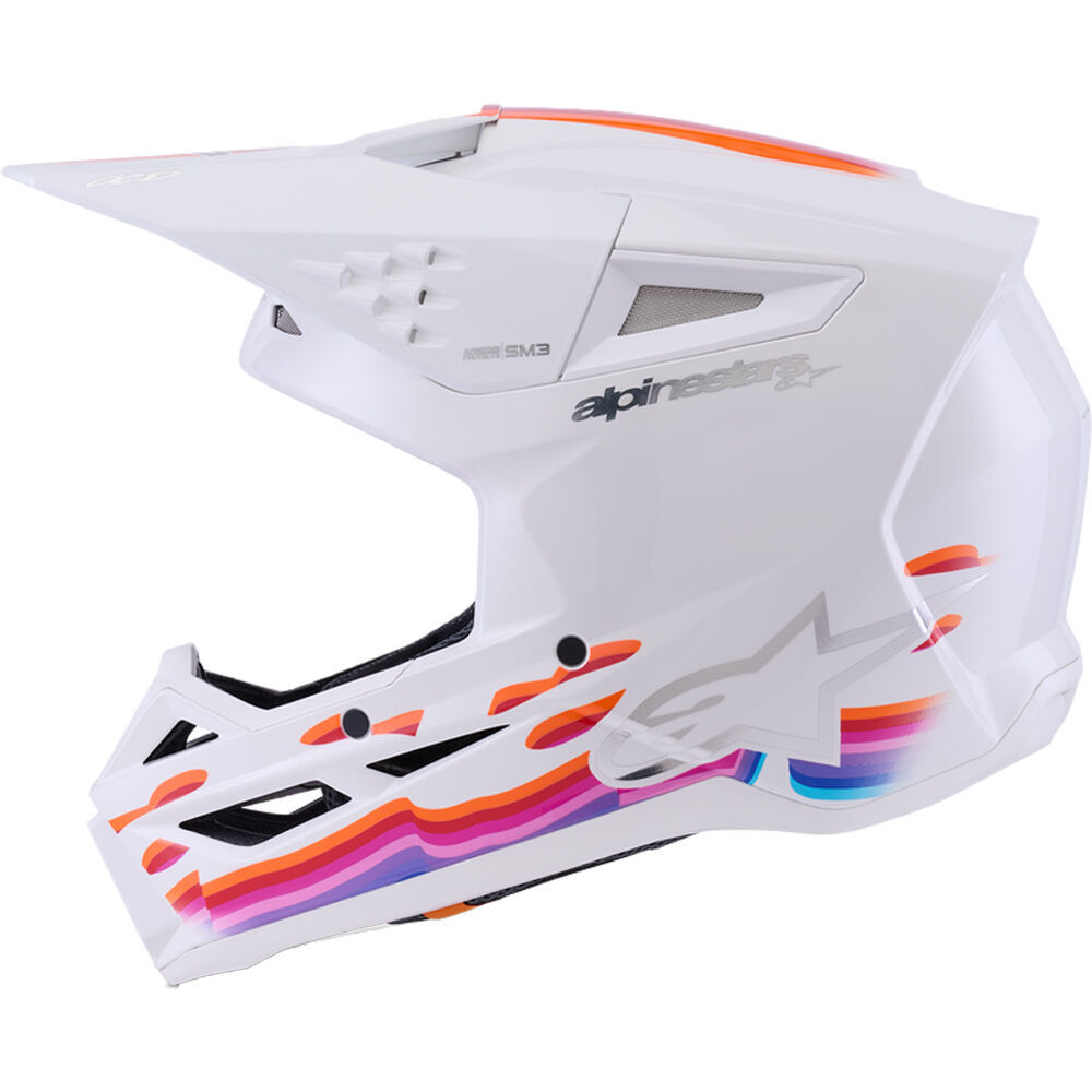 The S-M3 helmet is a cutting-edge protective gear designed for global safety standards, conforming to DOT certification and ECE 2206 homologation. It features a patented visor release system that reduces neck strain during impacts, while its advanced ventilation system—boasting 10 inlets and 7 exhaust ports—ensures exceptional heat transfer. Enhanced safety is provided by Alpinestars' innovative low-friction coating on the EPS liner, which minimizes rotational forces during oblique impacts. Additionally, the lightweight thermo-injected outer shell, crafted with a specialized polymer blend, delivers superior impact protection without compromising comfort.