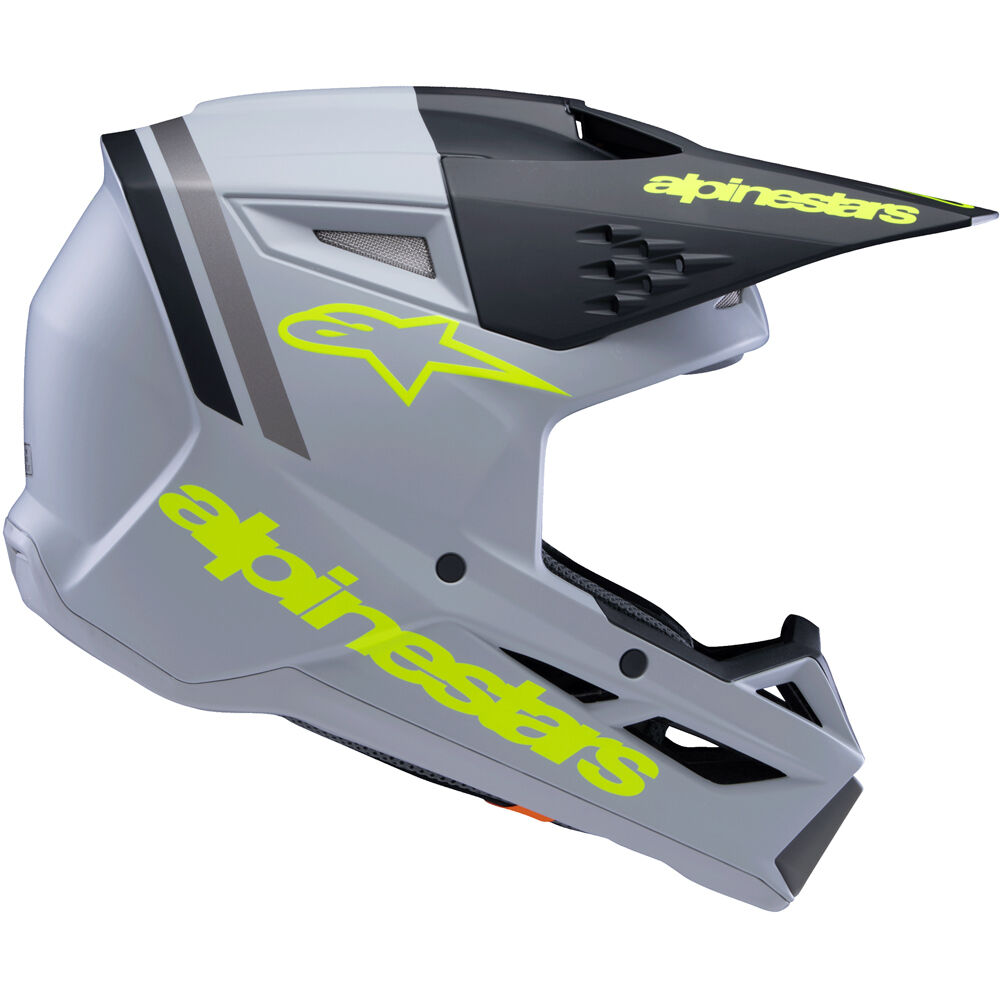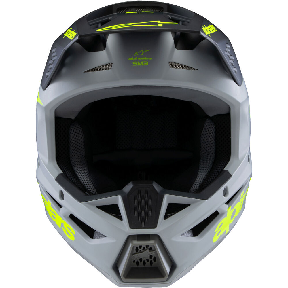 The S-M3 helmet is a cutting-edge protective gear designed for global safety standards, conforming to DOT certification and ECE 2206 homologation. It features a patented visor release system that reduces neck strain during impacts, while its advanced ventilation system—boasting 10 inlets and 7 exhaust ports—ensures exceptional heat transfer. Enhanced safety is provided by Alpinestars' innovative low-friction coating on the EPS liner, which minimizes rotational forces during oblique impacts. Additionally, the lightweight thermo-injected outer shell, crafted with a specialized polymer blend, delivers superior impact protection without compromising comfort.