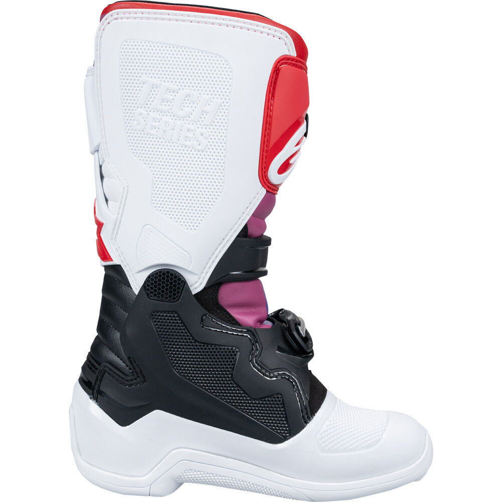 The industry-leading Tech 7 MX boot incorporates innovative materials and technology in a completely new design for a lighter, more anatomically profiled performer. This CE-certified boot promotes core stability and flexes via a biomechanical pivot while offering excellent ankle protection. The boot chassis has been designed to give a complete feel and optimized interaction with bike controls, while the innovative buckle system allows easy, precise closure.