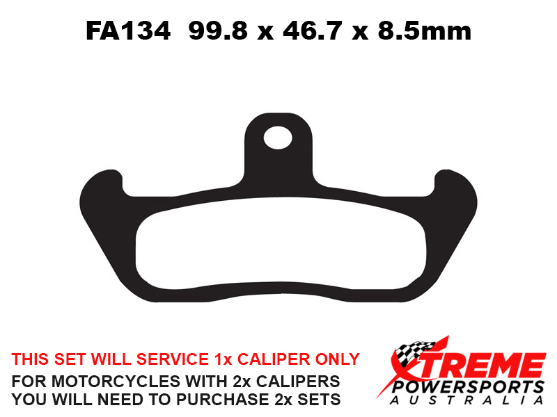 This set of brake pads will service 1x brake caliper only. For motorcycles with 2x brake calipers, you will need to purchase 2x brake pad sets.