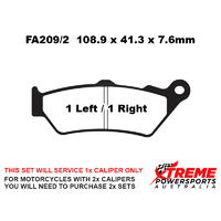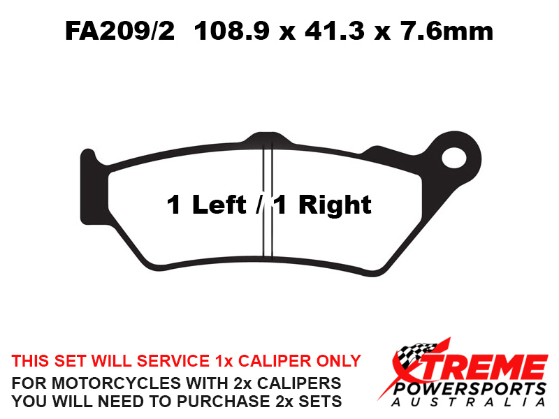 This set of brake pads will service 1x brake caliper only. For motorcycles with 2x brake calipers, you will need to purchase 2x brake pad sets.