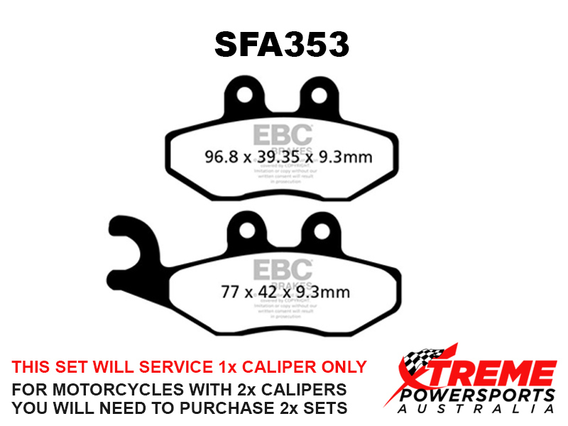 This set of brake pads will service 1x brake caliper only. For motorcycles with 2x brake calipers, you will need to purchase 2x brake pad sets.