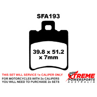 This set of brake pads will service 1x brake caliper only. For motorcycles with 2x brake calipers, you will need to purchase 2x brake pad sets.