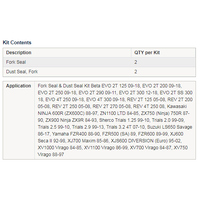 • Kit contains 2x Fork Seals and 2x Dust Seals.