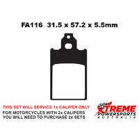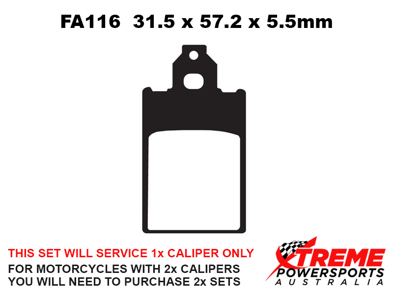 This set of brake pads will service 1x brake caliper only. For motorcycles with 2x brake calipers, you will need to purchase 2x brake pad sets.