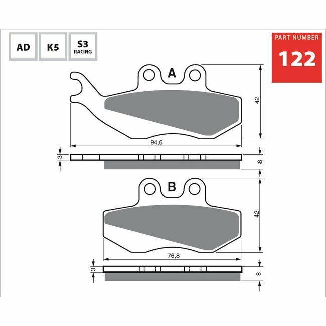 • The S3 sintered compound is optimal for street bikes, dual sport, touring, cruisers. It's recommended on applications with rather larger engines or for people who ride harder than average and want the great stopping power of a sintered brake pad.