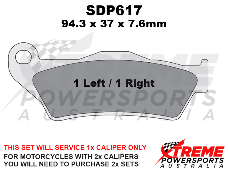 This set of brake pads will service 1x brake caliper only. For motorcycles with 2x brake calipers, you will need to purchase 2x brake pad sets.