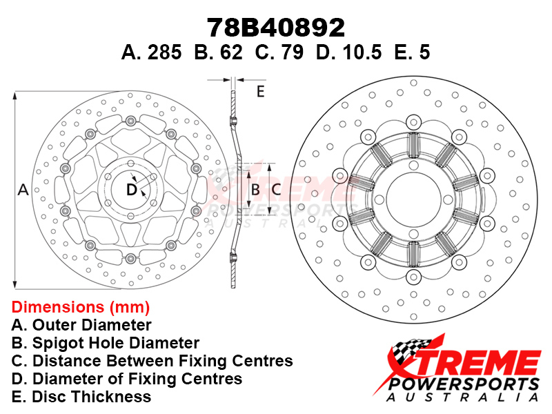 • These consist of a braking rotor in stainless steel, connected by 10 fastener screws to a CNC machined anodised aluminium alloy housing.