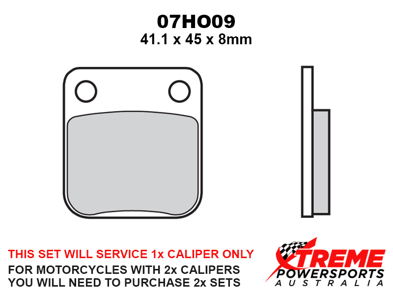 This set of brake pads will service 1x brake caliper only. For motorcycles with 2x brake calipers, you will need to purchase 2x brake pad sets.