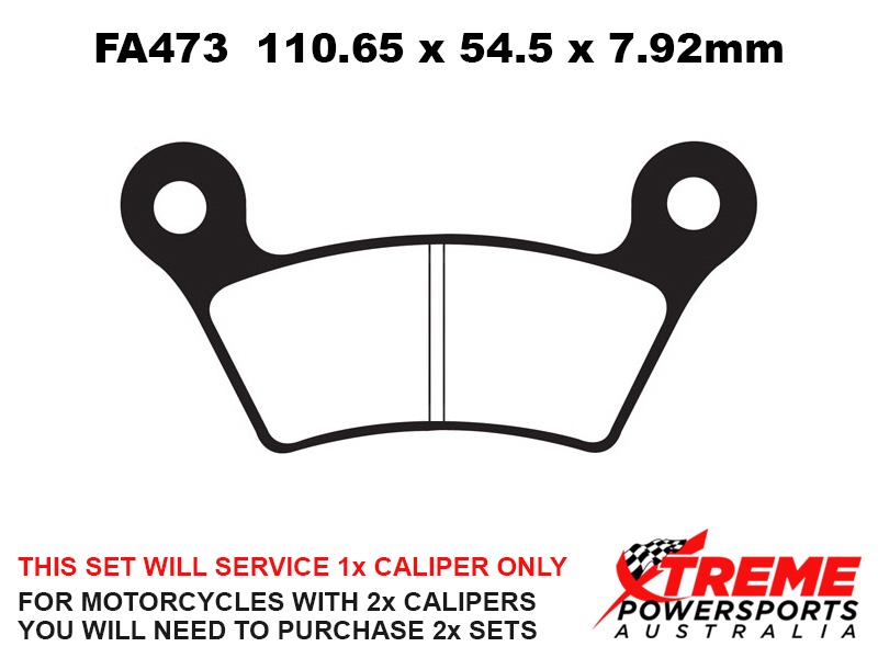 This set of brake pads will service 1x brake caliper only. For motorcycles with 2x brake calipers, you will need to purchase 2x brake pad sets.