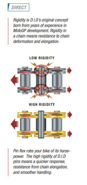• The high rigidity of DID pins means a quicker response, resistance from chain elongation, and smoother handling.