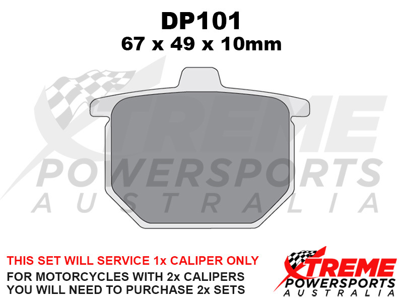 This set of brake pads will service 1x brake caliper only. For motorcycles with 2x brake calipers, you will need to purchase 2x brake pad sets.