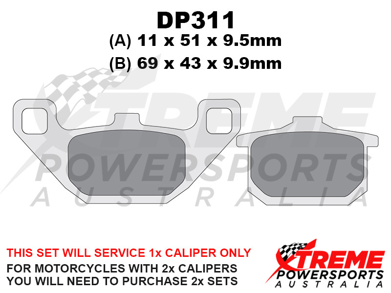 This set of brake pads will service 1x brake caliper only. For motorcycles with 2x brake calipers, you will need to purchase 2x brake pad sets.