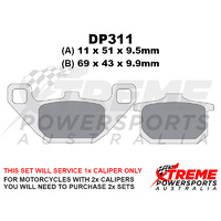 The DP Standard brake pads are DP Brakes OEM replacement sintered metal compound. Ideal for everyday street, off-road and ATV use, they provide excellent all-round braking hot or cold, wet or dry. Lasting up to 3 times the mileage of most other brands they have one of the lowest wear rates on the market. Very low levels of brake dust and no noise and no thermal cycle bedding-in required are also benefits of the DP Standard.