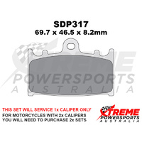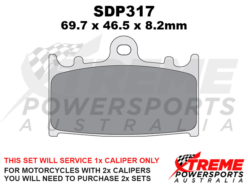 This set of brake pads will service 1x brake caliper only. For motorcycles with 2x brake calipers, you will need to purchase 2x brake pad sets.