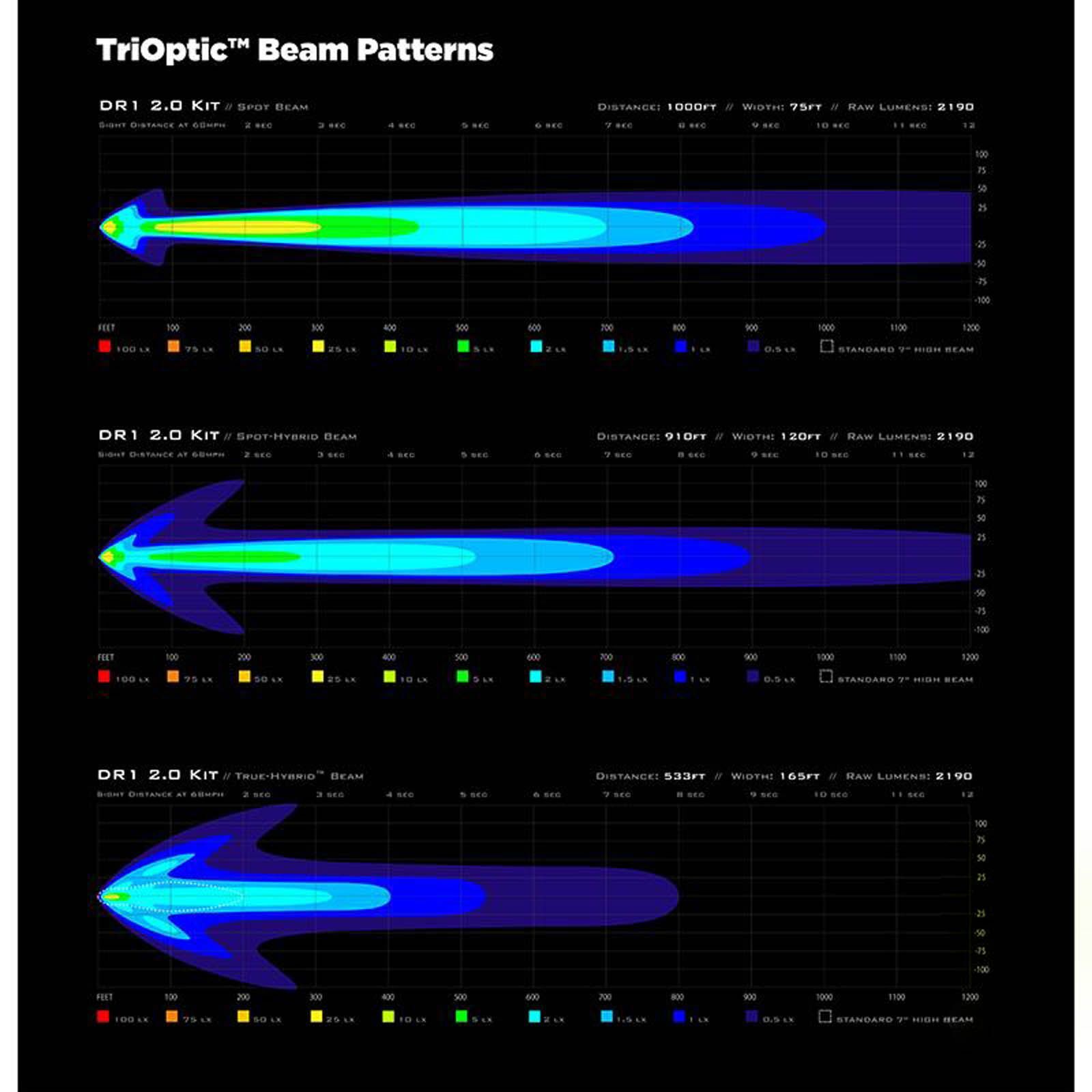 Denali 2.0 Light Kits are brighter, more robust, and a lot more versatile. The all new Cree High-Intensity 10 watt LED's are focused through our TriOptic™ Lens System to give you three unique beam patterns in one kit. Equipped with DataDim™ Technology and a modular HotSwap™ wiring harness, the lights can be upgraded in seconds to switch between half and full intensity with your vehicle's original high beam switch. Our DrySeal™ submersible waterproof construction and Impact PC™ Bezels create super durable light and switch housings that can withstand the most extreme environments without giving up.