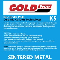 • The K5 sintered compound is optimal for off-road dirt bikes and ATV. It is recommended for riders who demand great off-road stopping power and brake pad durability when riding on tough off-road terrains.