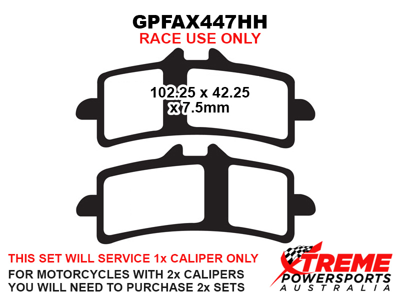 GPFAX Sintered Road Race Brake Pads are for RACE ONLY use. This is a blend of brake pad that has higher friction and far better grip than any other brake product on the market.