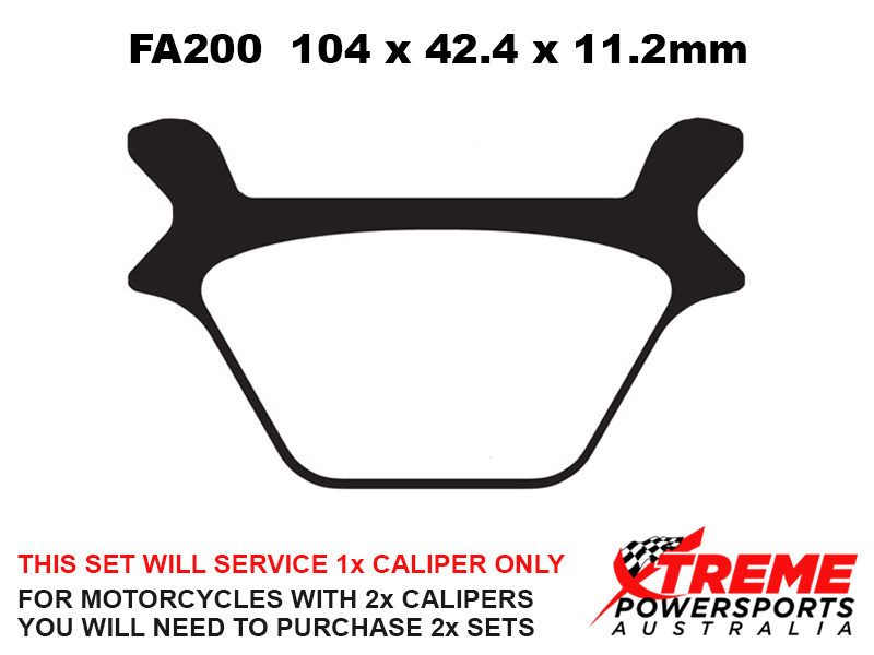 This set of brake pads will service 1x brake caliper only. For motorcycles with 2x brake calipers, you will need to purchase 2x brake pad sets.