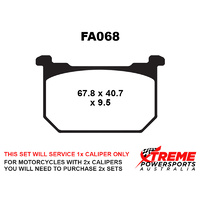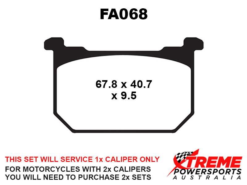 This set of brake pads will service 1x brake caliper only. For motorcycles with 2x brake calipers, you will need to purchase 2x brake pad sets.