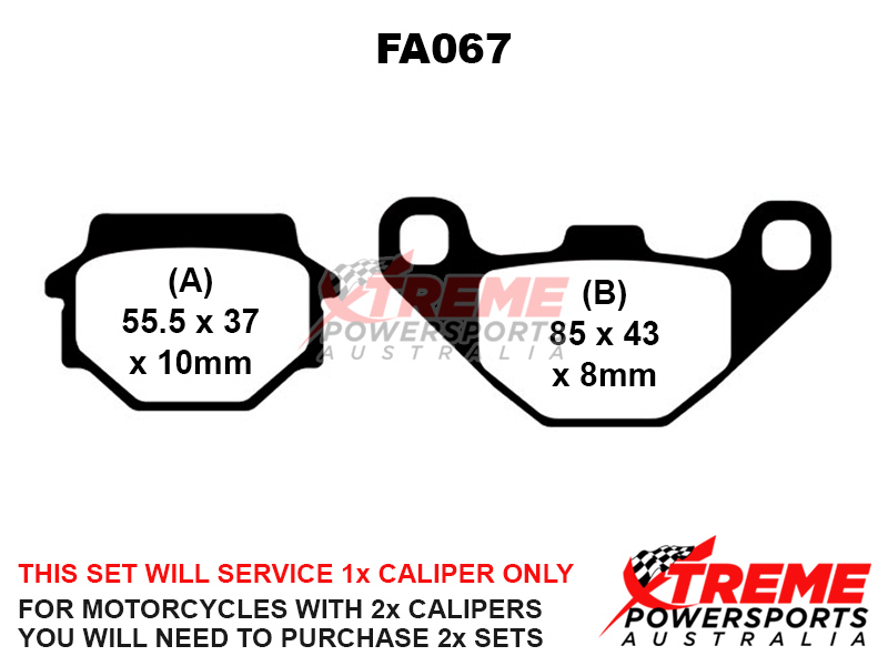 This set of brake pads will service 1x brake caliper only. For motorcycles with 2x brake calipers, you will need to purchase 2x brake pad sets.