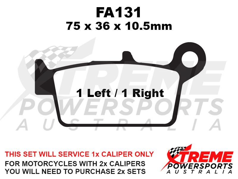 This set of brake pads will service 1x brake caliper only. For motorcycles with 2x brake calipers, you will need to purchase 2x brake pad sets.