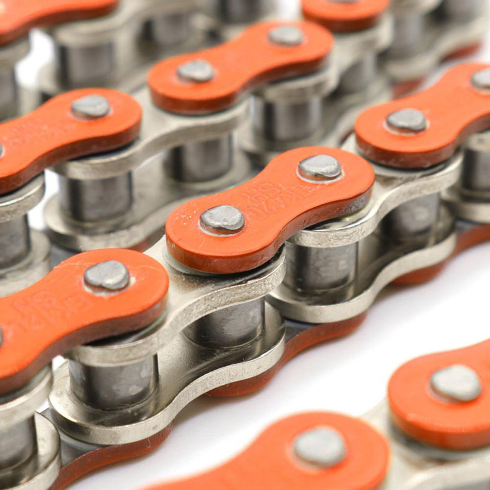 All EK Chains motocross chains utilize our CRH pin treatment which provides an extremely hard outside coating and softer inside to increase strength and reduce chain wear. Exclusive to EK Chains, the Chormium Carbide pin surface coating also offers superior impact and shock absorption while reducing oxidation caused by natural elements.