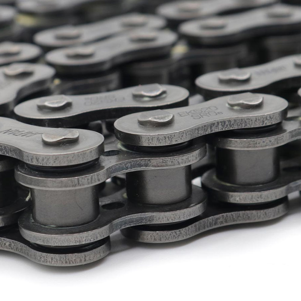All EK Chains motocross chains utilize our CRH pin treatment which provides an extremely hard outside coating and softer inside to increase strength and reduce chain wear. Exclusive to EK Chains, the Chormium Carbide pin surface coating also offers superior impact and shock absorption while reducing oxidation caused by natural elements.