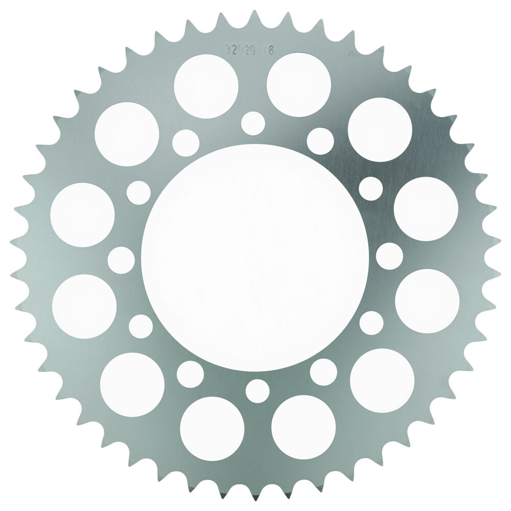 ESJOT aluminium sprockets have been developed especially for the tough conditions in Motocross, Enduro and road use. Compared to conventional steel sprockets, an ESJOT aluminium sprocket brings a weight saving of over 60%. The use of high-quality aluminium (7075 T6), as well as the extremely low manufacturing tolerances ensure an extraordinarily long service life.