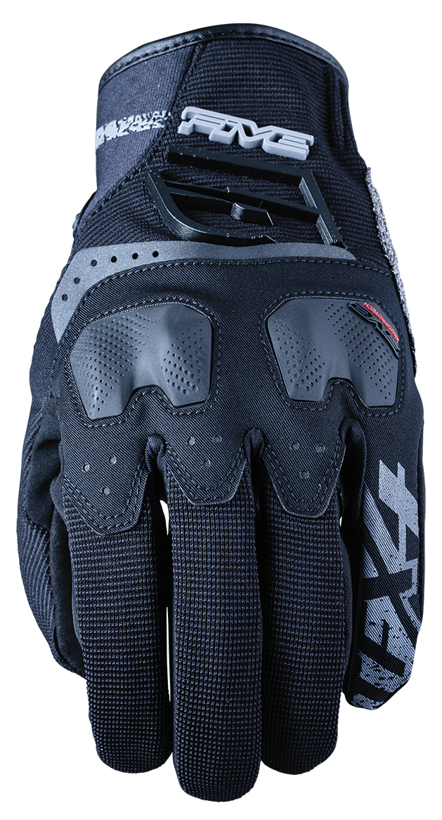 The TFX4 represents the entry-level style in the FIVE Trail-Adventure range...in every sense of the word! Accessible, because its inexpensive, easy to wear, and because it meets all your basic needs for paved or dirt-road use. Lightweight, comfortable, and sleek, it is nevertheless quite protective, with its dual ERGO PROTECH® soft shell and wide Kevlar® panel covering nearly half of the palm, made of synthetic leather. Indeed, the TFX4 features no elements of animal origin, to the delight of vegan adventurers. A silicone print on the index and middle fingers improves your grip on the controls in wet conditions. The use of water-repellent fabric on the zone around the protective shells allows the water to slide over this area, in case you get splashed when you cross a river or get peppered by unexpected light rainfall. The TFX4 is, admittedly, not weatherproof, but this makes it even more versatile. This is a glove youll reach for when you want to travel light, yet it has so many possible uses. From a ride on a sun-drenched road, to a jaunt on a gravel run in much less predictable circumstances, the TFX4 is always ready to head off for adventure.