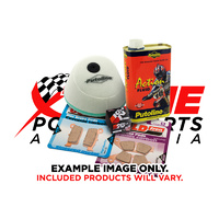 • Kits are made to suit application and may include an air filter, air filter oil, oil filter and brake pads or shoes.