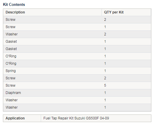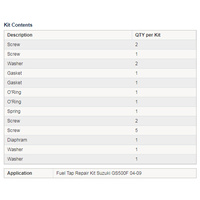 • Fuel tap rebuild kits are intended to be used to repair one fuel tap only.