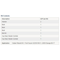 • Contains everything needed to rebuild your caliper to like new condition.