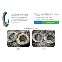 SKF utilizes decades of bearing sealing experience to provide solutions that gives the ultimate riding experience with reduced friction, increased service intervals and longer bearing life. The Wheel Seal Kit also includes SKF bearings.