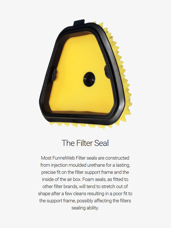 - Developed and tested in the harshest, dustiest conditions Australia has to offer, providing riders with a filter that will last longer between washes than standard dual stage foam air filters.