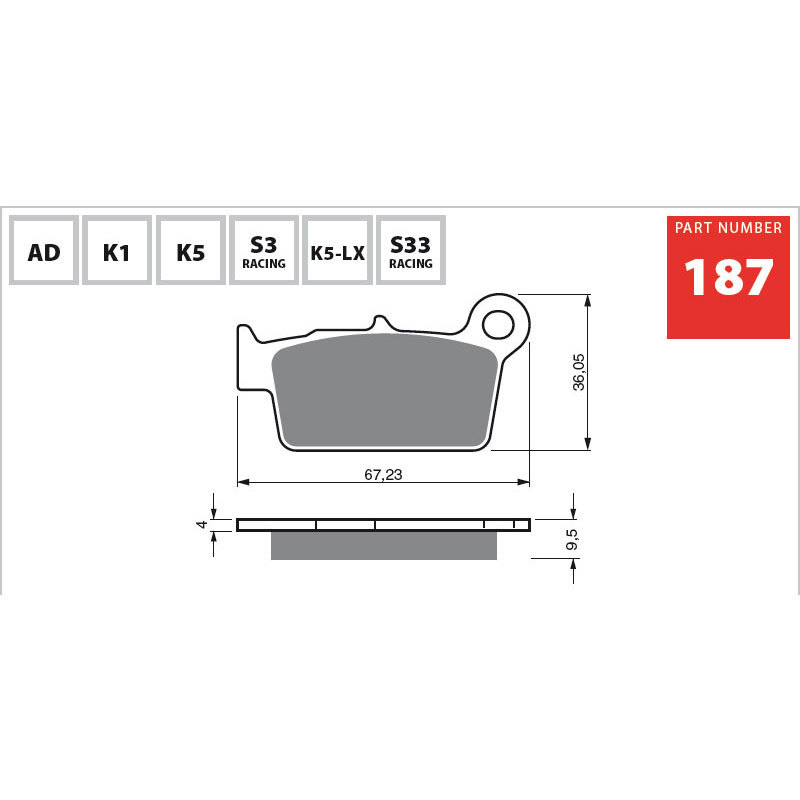 • The K5 sintered compound is optimal for off-road dirt bikes and ATV. It is recommended for riders who demand great off-road stopping power and brake pad durability when riding on tough off-road terrains.