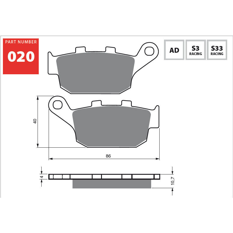 • The S3 sintered compound is optimal for street bikes, dual sport, touring, cruisers. It's recommended on applications with rather larger engines or for people who ride harder than average and want the great stopping power of a sintered brake pad.